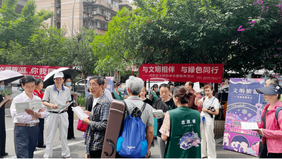 2023年“5.19中国旅游日”成都市精神文明办室指导,成都市文化广电旅游局、成都市金牛区文化体育旅游局分别在成都市锦江区、成都市金牛区进行了“与文明相伴.与绿色同行”文明旅游主题日活动。