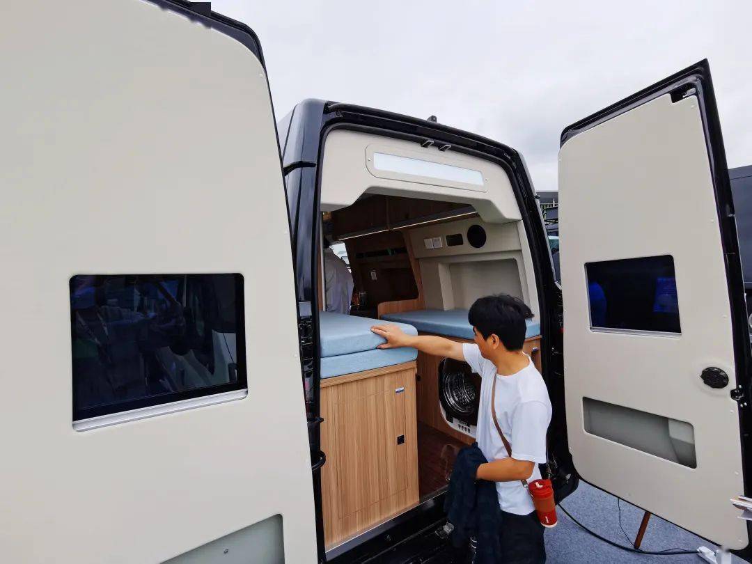 在展台的一侧,一款全国限量10辆的旅行家G20升顶房车,让房车驶入地库成为可能。参展商、上汽大通房车上海直营店总经理张峰介绍:“这款车的特点就是车顶在行驶过程中可以下降,方便驶入地库,既可以作家用代步车,也适合短途旅游和商务场景。”