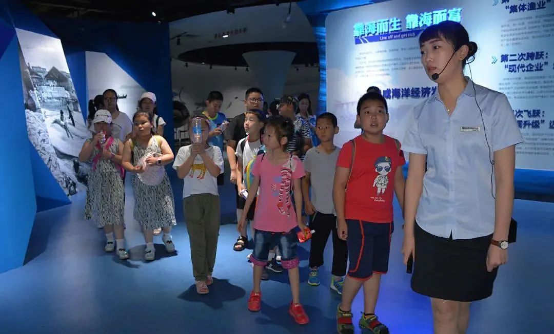 在荣成海洋食品博览中心,文字、视频和声光电等高科技,展示着大海的神奇和富有。展馆内陈列的各种各样的海鱼、珊瑚、贝类和海参等模型,以及海草、海带、紫菜等植物样品,都是孩子们了解家乡、探索大海最好的教材。