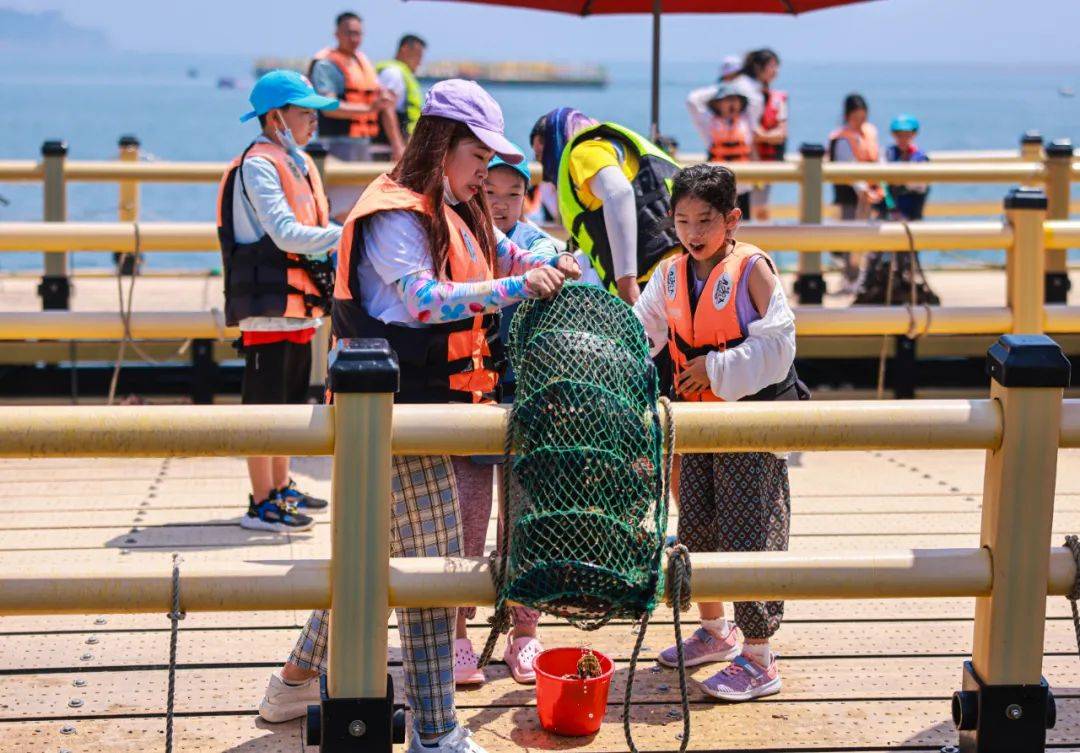 岸上的爱伦湾海洋牧场展厅、体验馆也非常值得打卡。你可以收获海洋牧场的发展历程、渔村生活变迁等知识;也可以通过显微镜观察海洋生物的神奇微观结构;还可以与各种海洋生物近距离接触,探究海洋精灵的神奇……超多乐趣等你探索。