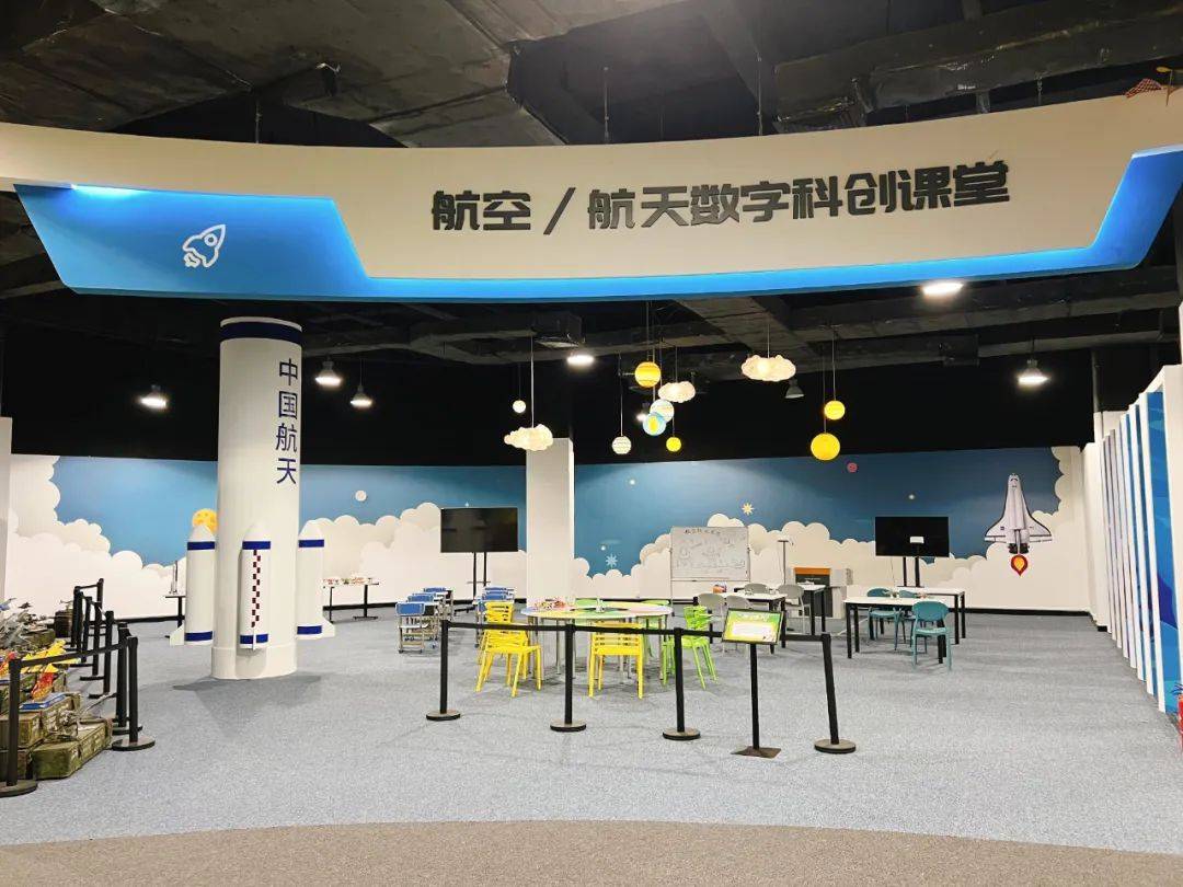 中心二层的歌尔青少年研学基地,数字互动投影空间、航天航空区、创客工厂、未来空间站等十大展区,充分激发了孩子们探索科技的兴趣。戴上VR一体机,突破想象力,来一场奇幻的冒险之旅,或是在竞速游戏中,沉浸式体验童趣世界里的“速度与激情”,捕捉数字科技所带来的乐趣吧!