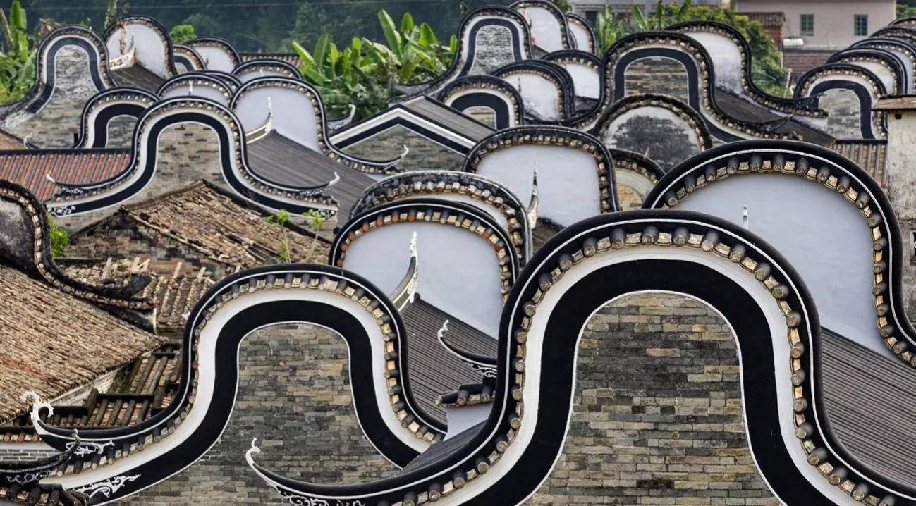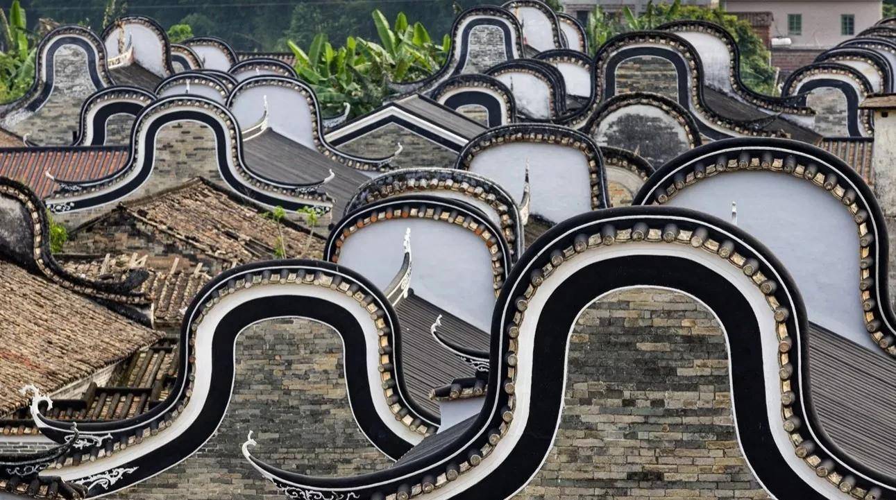 雨后的古村很美,小路由麻石铺就,每一栋楼有古井、庭院。最吸引人、最有特色的是房顶,像极了大耳朵。