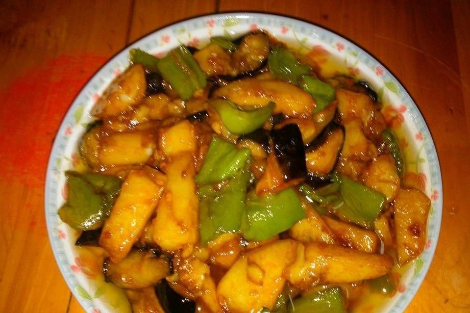 2、地三鲜,让人有点想不通。性格豪爽粗狂的东北人,却做出这样一道入口嫩滑细腻的菜来。看着很油腻,不过,吃起来却是一种享受,一点也不油腻。