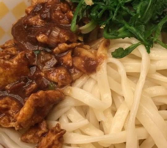 3、东北炸酱面,在东北,买了一碗炸酱面。结果,发现及时是叫了小碗的,也只吃了一半就吃不下去了。并不是因为不好吃,而是因为面条实在太多,老板实在是太舍得下料了!