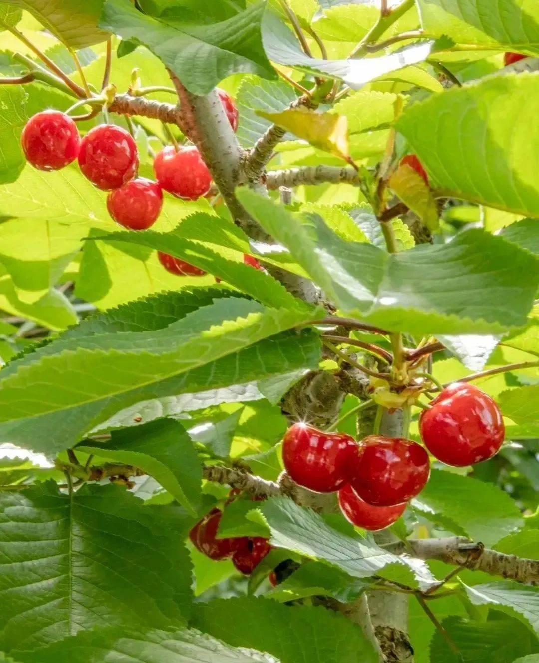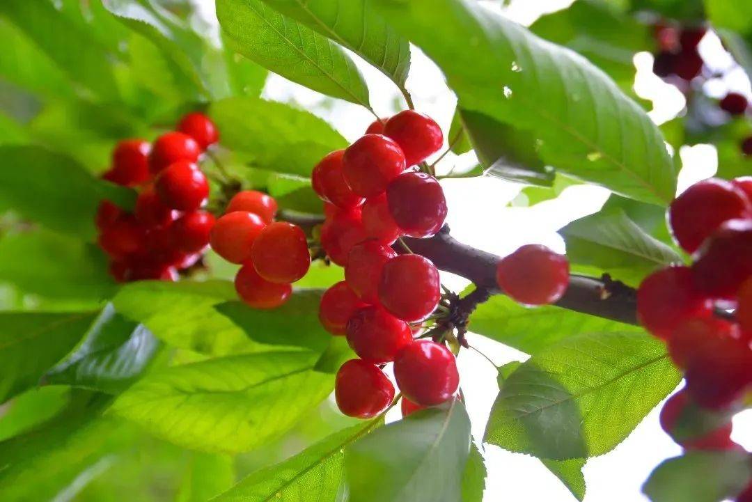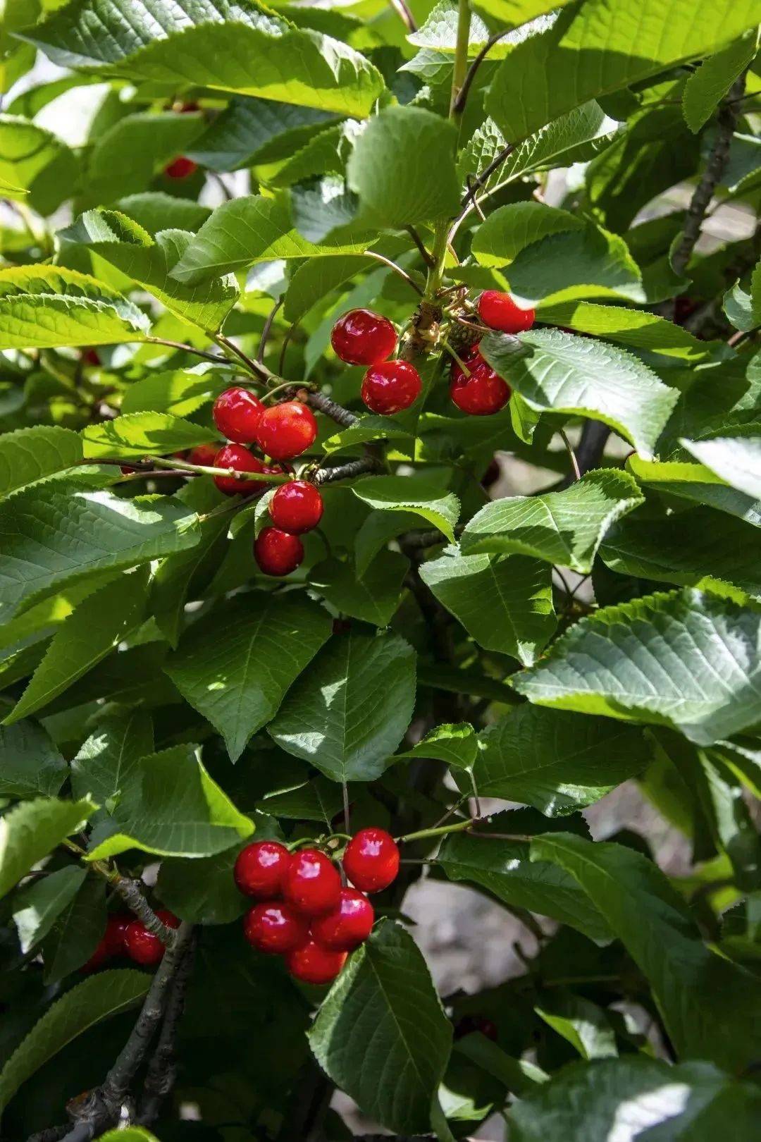 一颗颗嫣红的甜樱桃缀满枝头,在阳光下如玛瑙般闪亮,摘一颗放入口中,幸福感简直爆棚。