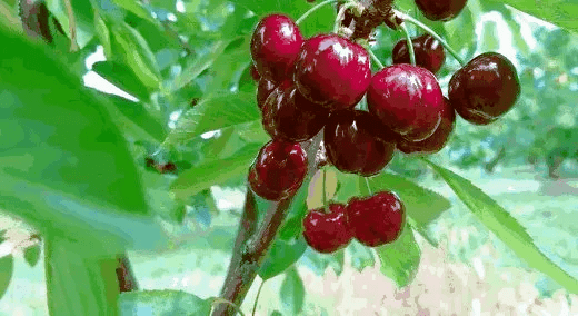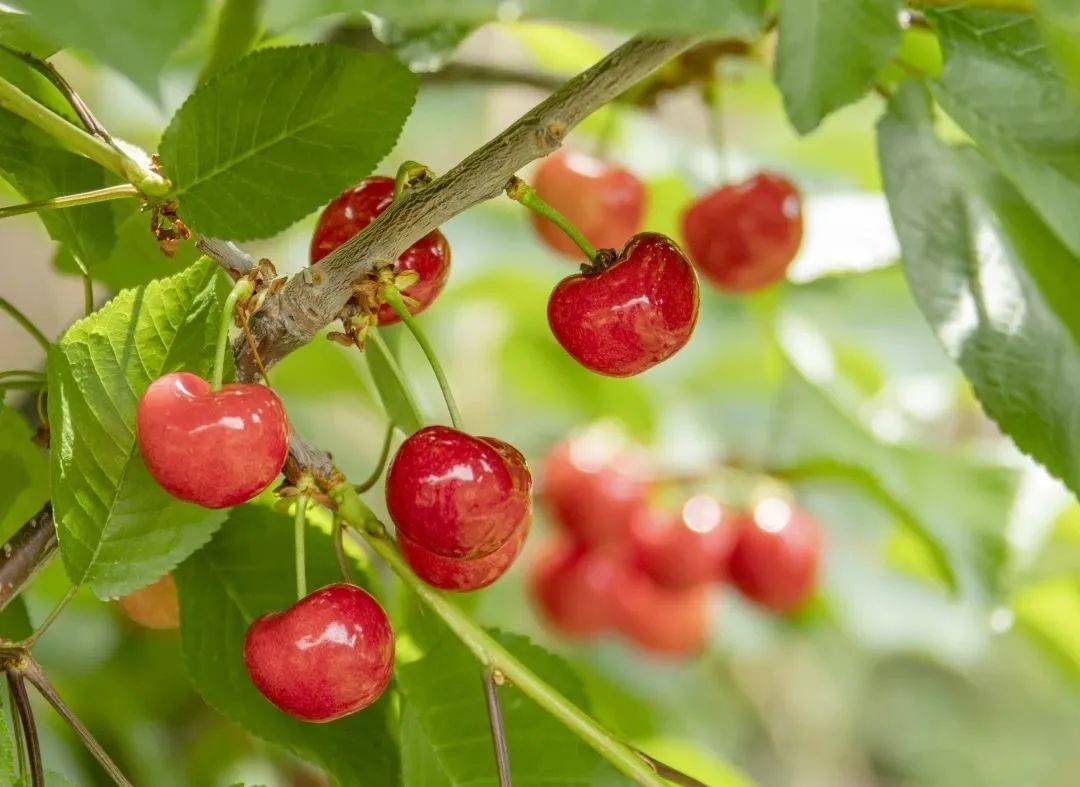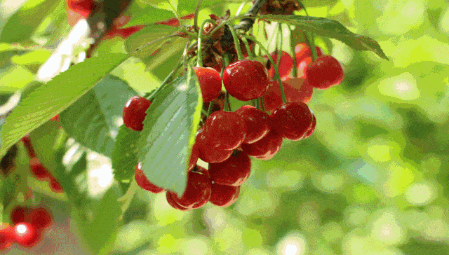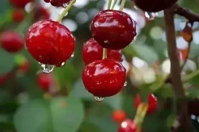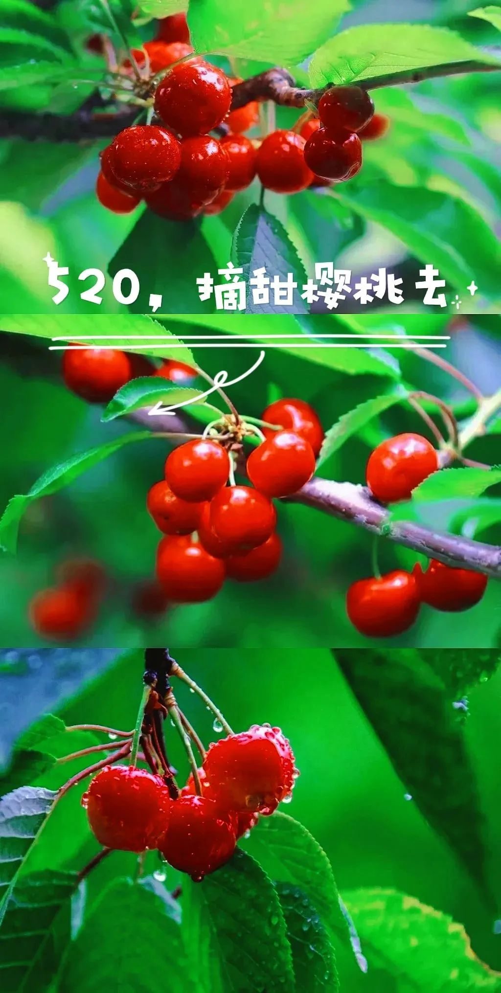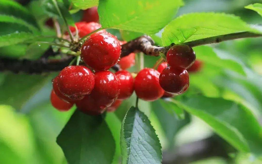 一颗颗嫣红的甜樱桃缀满枝头,在阳光下如玛瑙般闪亮,摘一颗放入口中,幸福感简直爆棚。