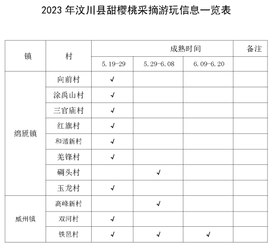 ▶《2023汶川县甜樱桃采摘游玩信息一览表》