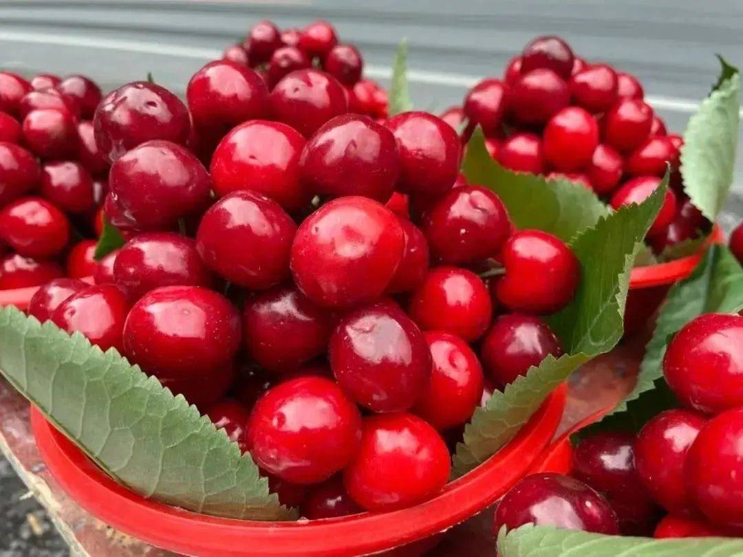 这里的甜樱桃品种主要以“红灯”为主,一颗颗核小还饱满,一口一个,味道简直不摆了!