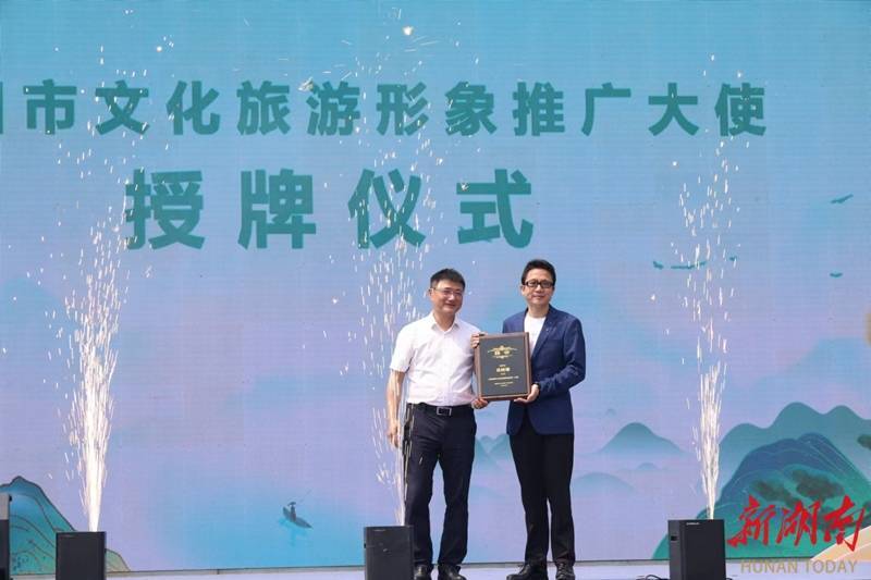 邵阳本土歌手袁树雄也来到现场,接受了“邵阳文化旅游形象推广大使”的荣誉授牌,并现场演唱了《早安隆回》和《一路向前》,将现场气氛推向高潮。