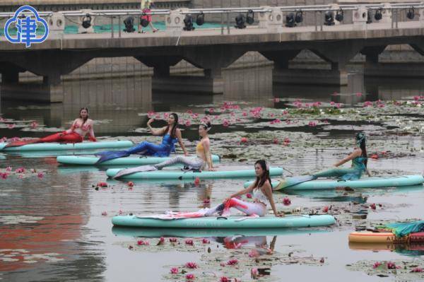 启动仪式上,锦鲤美人鱼围塔令人眼前一亮,美人鱼们将水上极限运动文化、女子瑜伽健康文化、自由潜水美学文化结合,打造了一场水上的文化视觉盛宴。