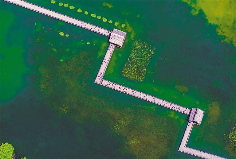 5月19日,游客在江苏省泰州市姜堰区溱湖国家湿地公园游览。连日来,泰州市推出景区门票减免等优惠措施,迎接中国旅游日。 汤德宏摄(中经视觉)