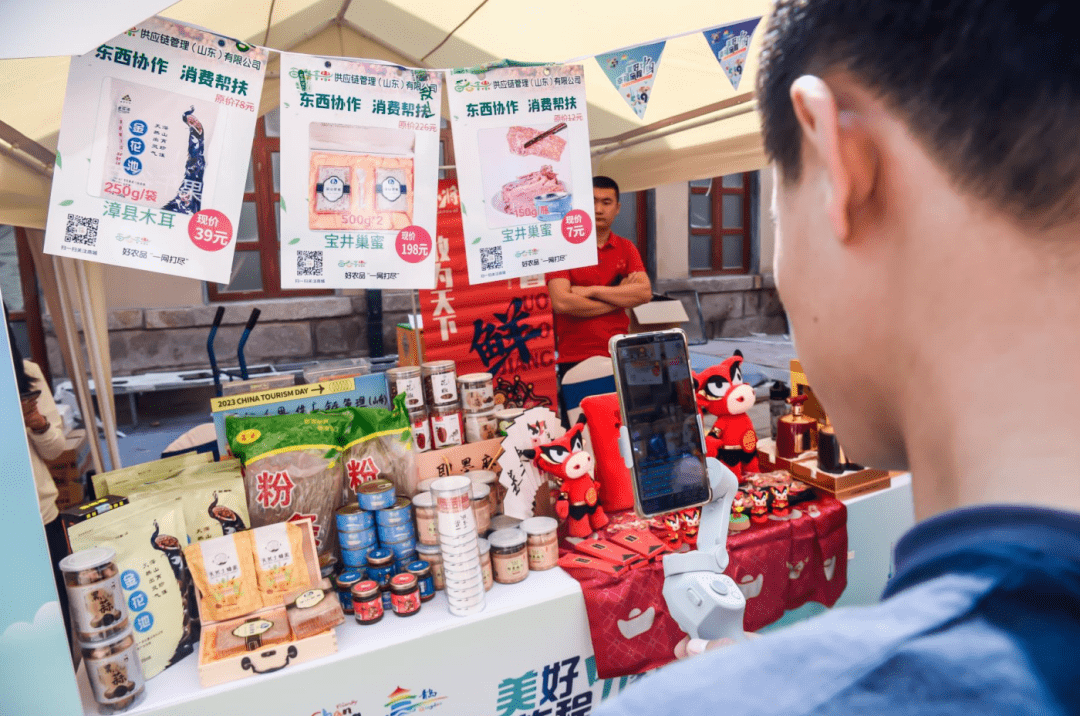 活动现场推出了“中国旅游日·青岛游礼”线下快闪展陈和主题文旅场景体验,既有各区市代表性非遗,又有民间代表性手工艺作品,实现了一场文化与艺术的碰撞。即墨古城、即墨老酒博物馆、百谷千果等文旅企业现场推介了特色产品,即墨麻片、即墨老酒、墨小牛、螺小将等产品展区人气满满。