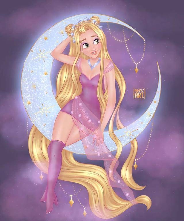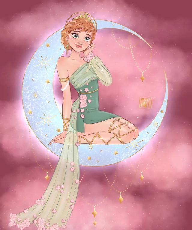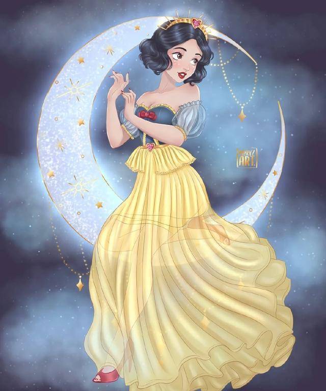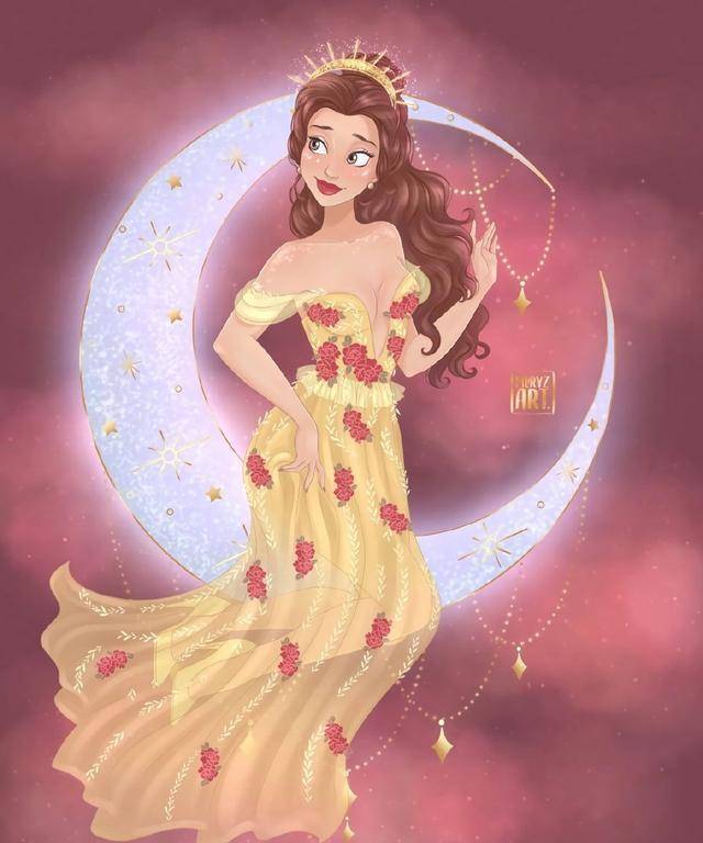 画师@meryzart绘制出迪士尼公主们,让迪士尼公主们化身月亮女神,哪一位公主最能打动你的心呢?