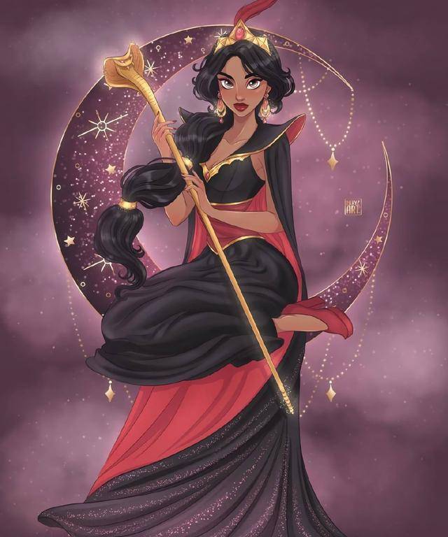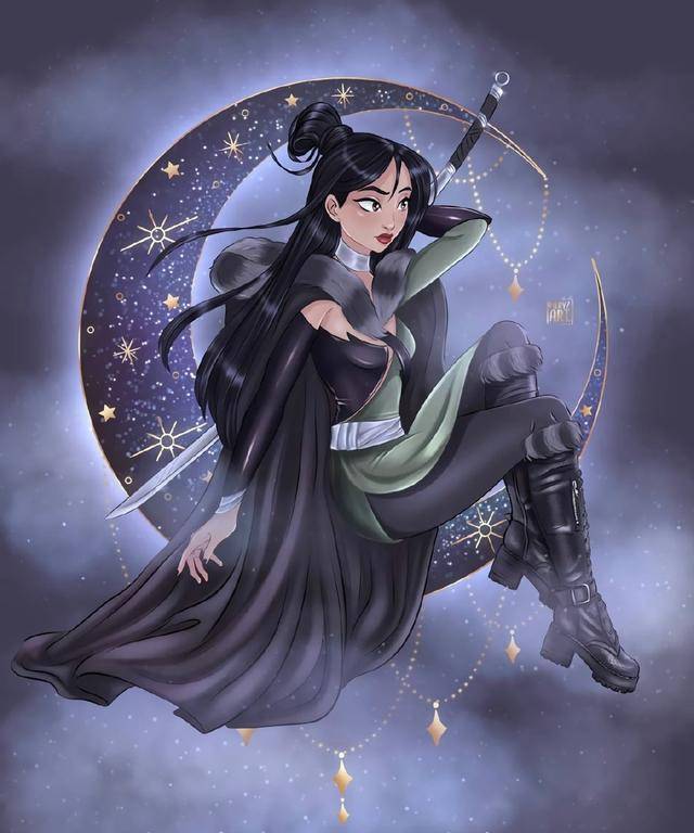 迪士尼公主月亮新装,茉莉公主尝试黑色,花木兰化身夜行侠客