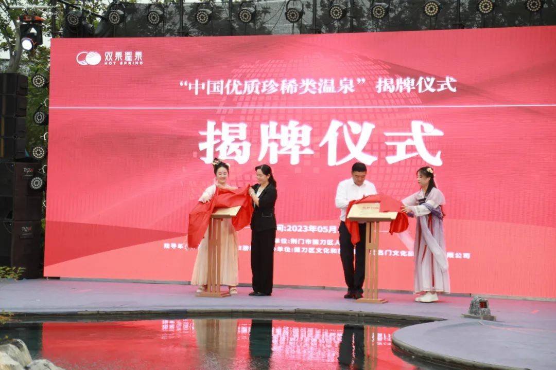 市委常委、市委宣传部部长徐莉,市政府副市长、荆门高新区党工委书记、掇刀区委书记周俊杰为“中国优质珍稀类温泉”揭牌。市委宣传部副部长董玉杰,市文化和旅游局党组书记、局长陈定萍,荆门高新区党工委副书记、管委会常务副主任、掇刀区委副书记、区长王玮等市区领导出席活动。中国温泉行业资深专家、国家级温泉星级标准评定员、中国旅游协会温泉旅游分会专家委员会委员张波,广东省旅游协会副会长、广东省温泉行业协会副会长、国家级温泉星级评定员杨进受邀出席活动,各旅行社、新闻媒体、文旅推介官参加活动。