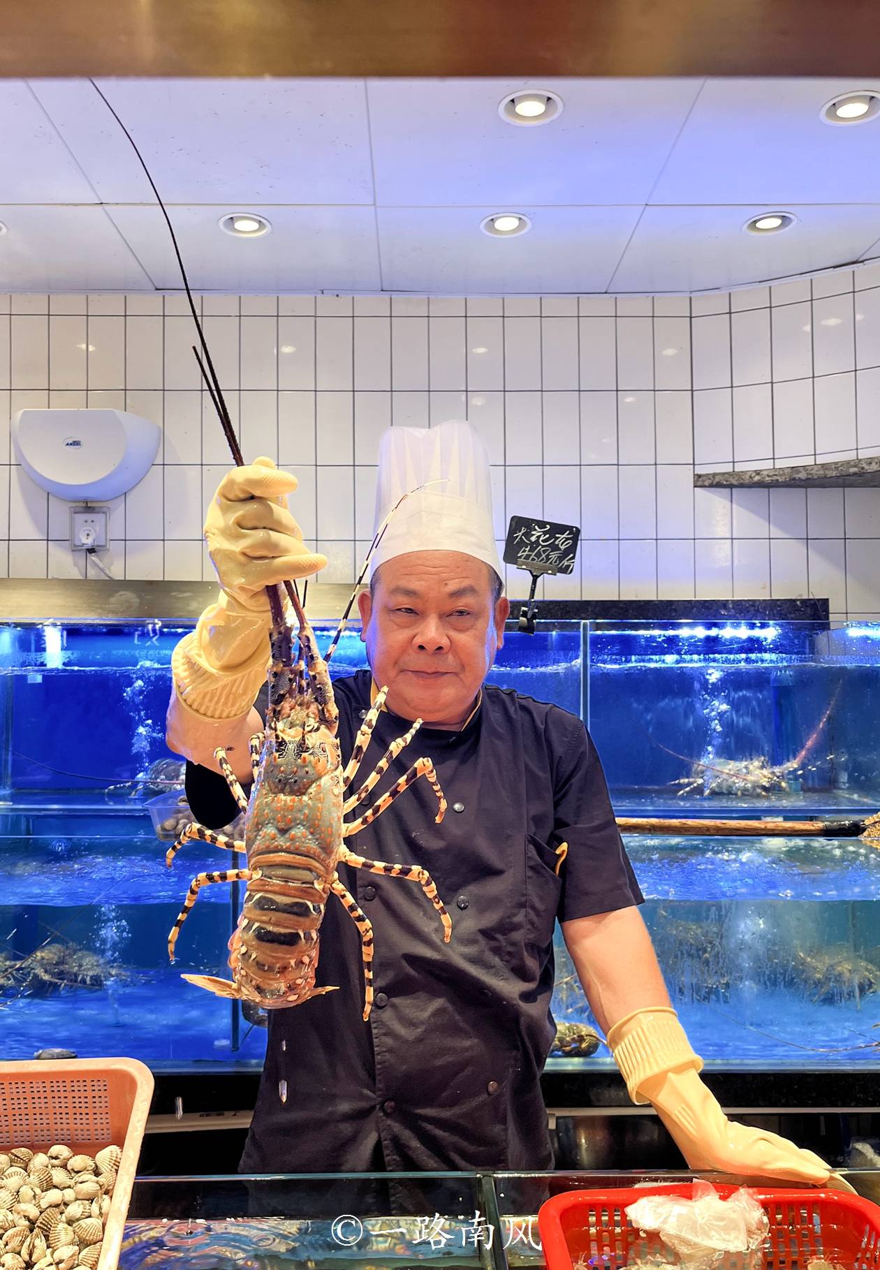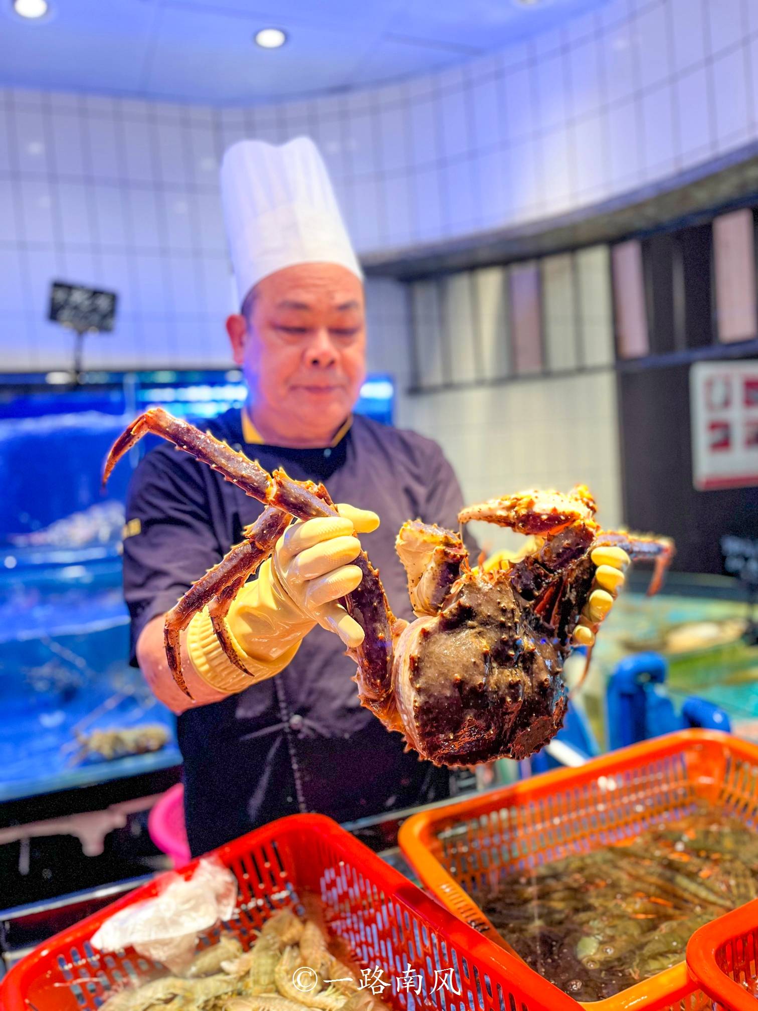硕大的龙虾、螃蟹从水里打捞出来时还在活蹦乱跳,资深的师傅才能够把它制服,普通人拿都拿不稳。