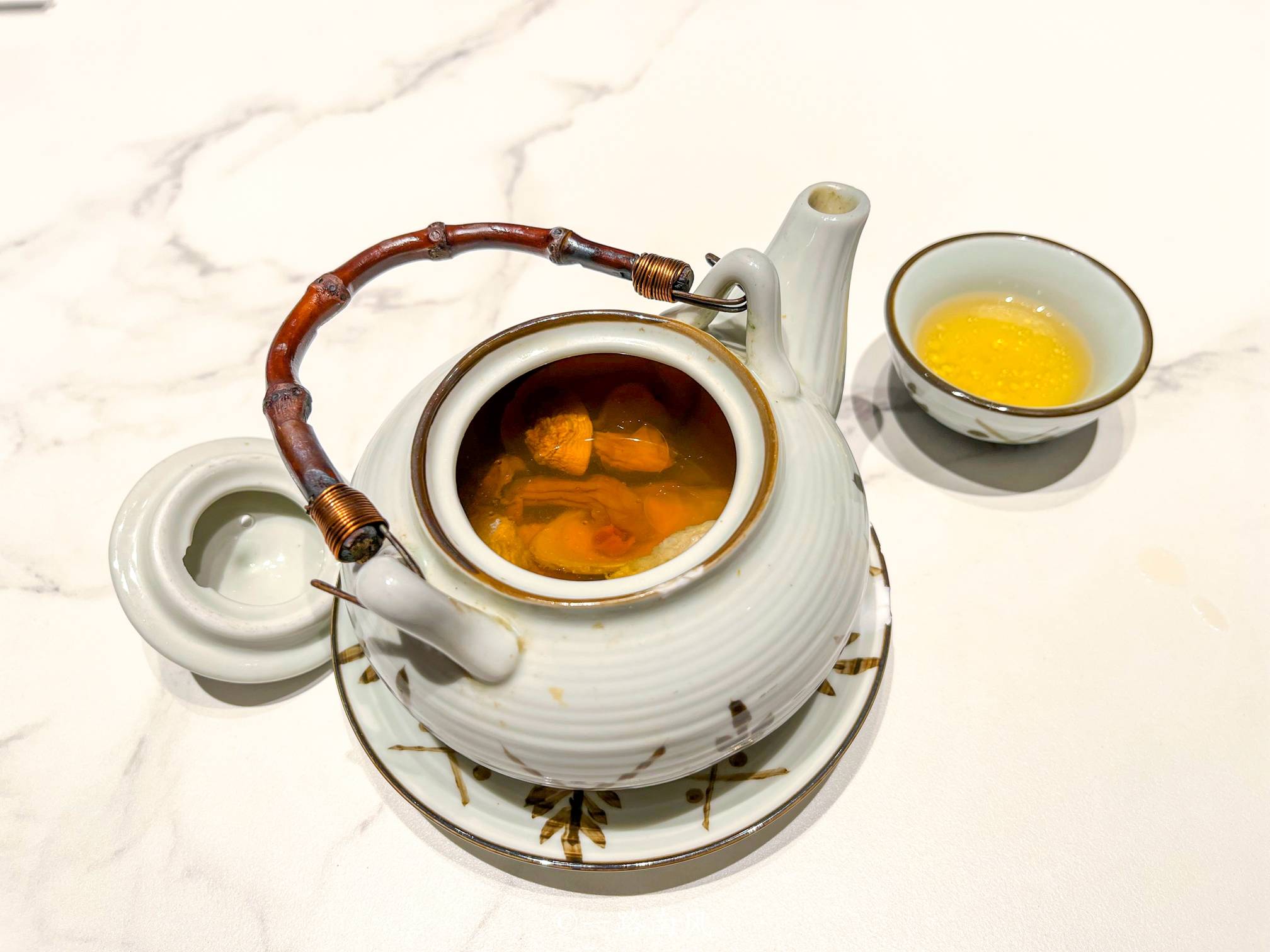 功夫汤:汤和汤料都装在茶壶里,喝汤时用的是茶杯,像极了喝工夫茶,有情调、有仪式感、有美感、有口福。