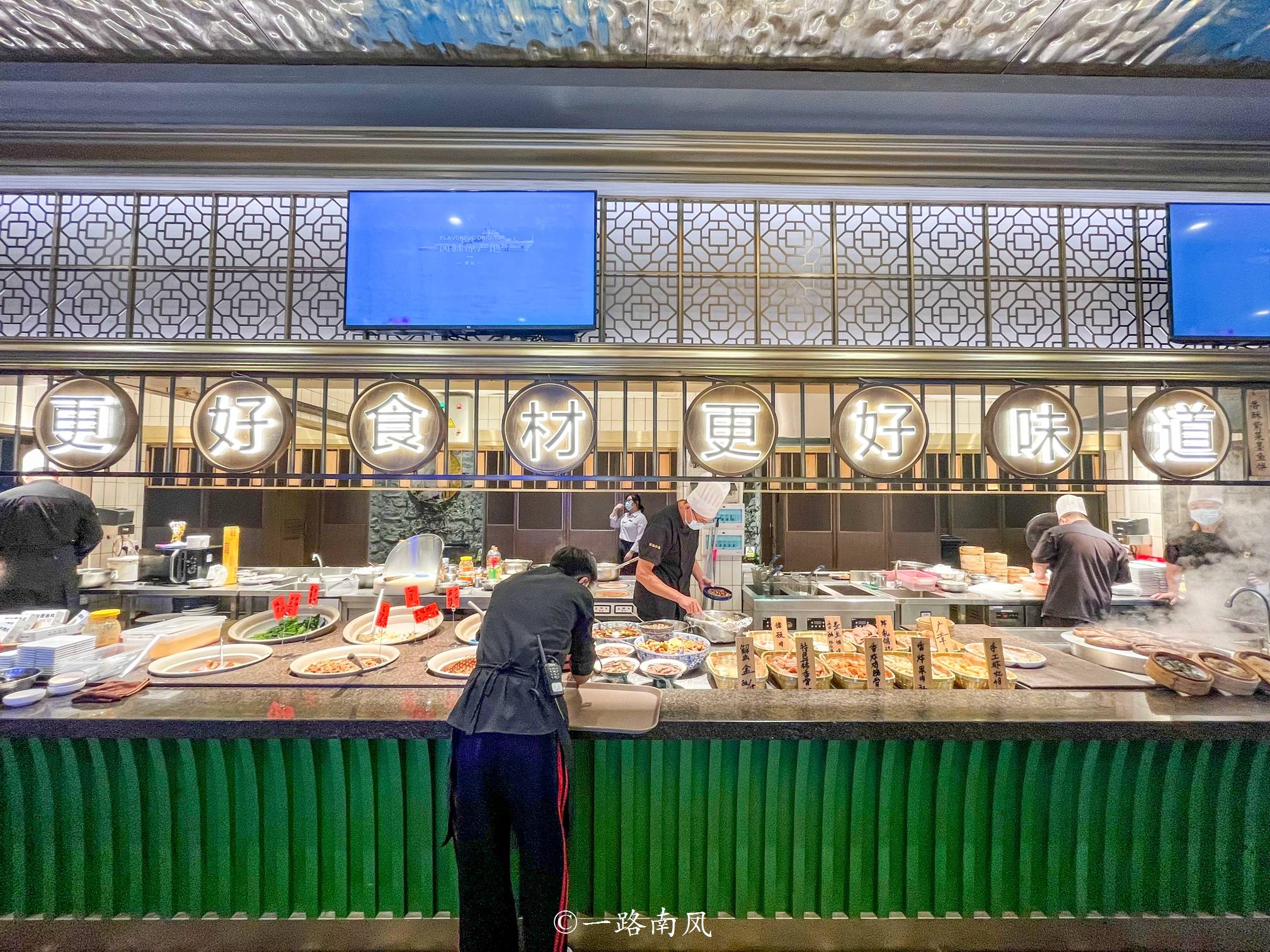 从一楼乘坐电梯到4楼,出了电梯就看到了。这家店的厨房和实物展示大厅是在一起的,整个制作过程清晰可见,少了后顾之忧。