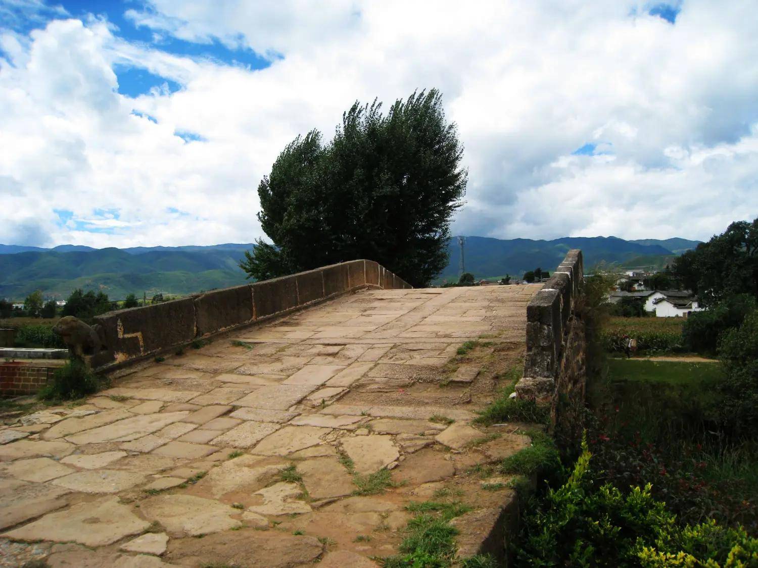 东门外有座玉津桥,横跨在黑潓江上。古桥呈灰土色,一看便知岁月流逝凸显的陈旧和沧桑,有些坑洼的桥面上嵌着一些马蹄印,不知道曾经有多少的马帮从这里经过。站在桥面上,看着水中的倒影和远处的村寨田野,来来往往的马帮,不知道究竟是要行往何方?