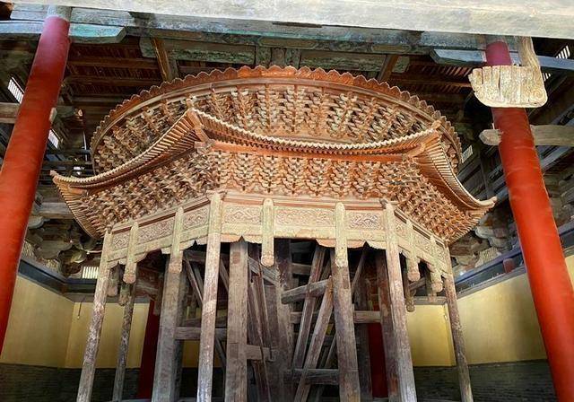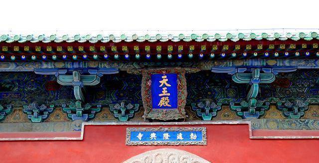 往里走,便是天王殿,此殿为单檐歇山式结构,其中一个看点,便是门口上面的金字匾额,这是康熙皇帝亲书的“敕建隆兴寺”,天王殿后为摩尼殿,隆兴寺是第一批国家重点文物保护单位,这不仅仅是因为其历史悠久,也是因为这里保存有6处全国之最,其中一个便是世界孤例的摩尼殿,始建于宋仁宗皇祐四年(公元1052年),为抬梁式木结构,充满立体感,殿内供奉的是释迦牟尼像,在大殿四周绘制有清代佛像,其他壁画为明代绘制,非常的精美。