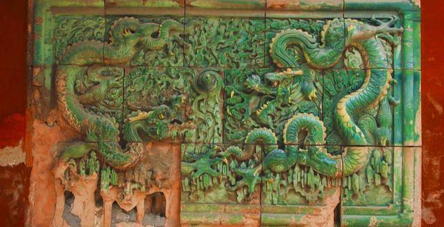 隆兴寺是没有的山门,据传正定县城南有条滹沱河,河水湍急,早年间是没有桥的,交通不便,后来打造了两条铁链制作了木桥,方便行人渡河,长年累月之后,铁链变成两条绿龙,危害当地百姓,绿龙被一位路过的天师收服。当时修建隆兴寺的官员忘记修寺庙的山门,正愁没有办法之际,便让工匠连夜动工,在寺前修了照壁,将两条绿龙镶嵌在中间,一来锁住绿龙让它不能作恶,二来就当这是隆兴寺的山门了。