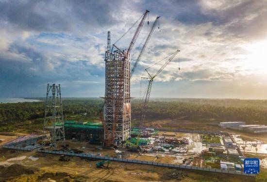 在海南省文昌市拍摄的建设中的海南商业航天发射场1号工位(无人机照片,5月12日摄)。