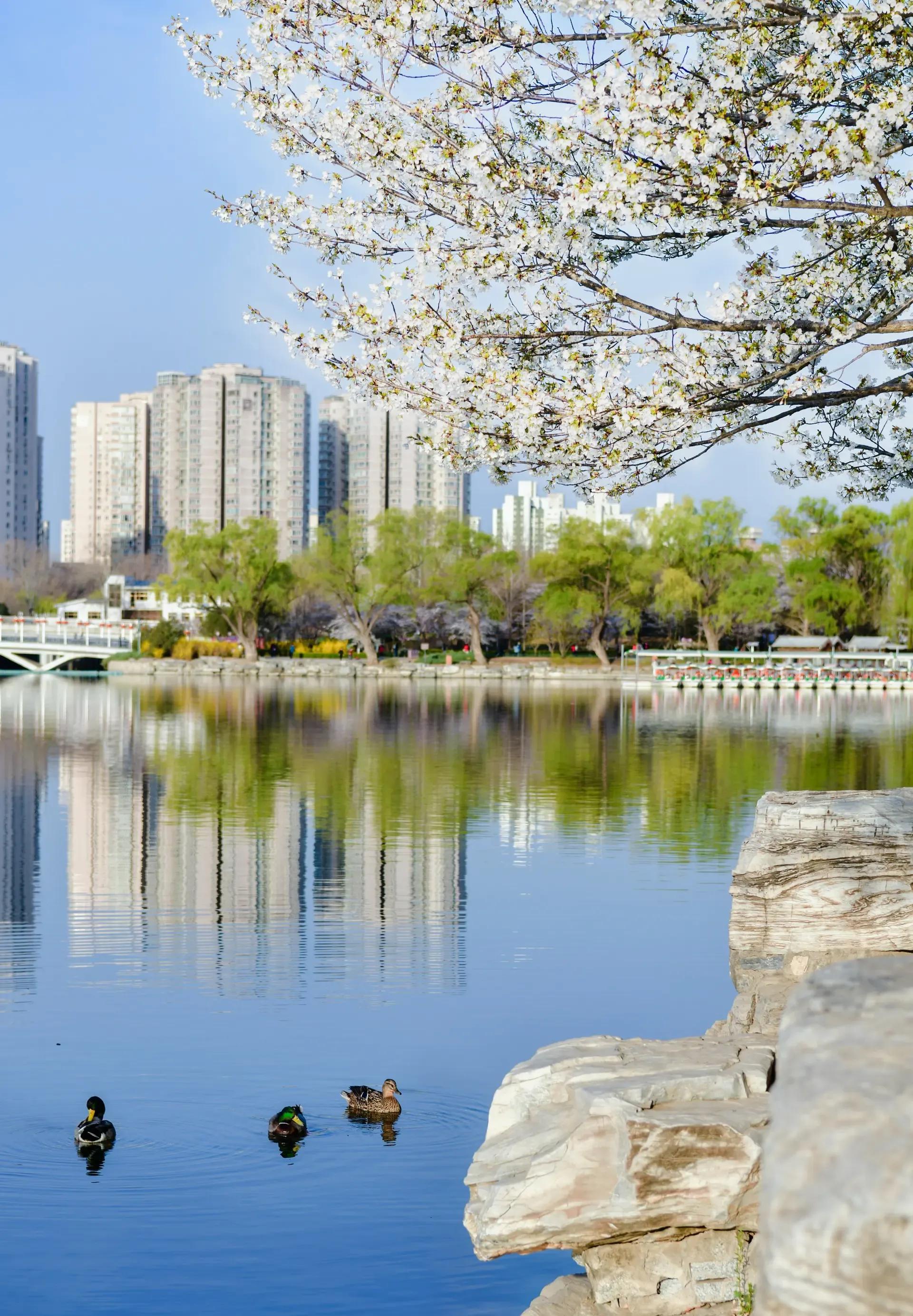 百花争艳,各自散发着自己独有的香气。粉色的桃花,雪白的梨花,黄色的油菜花......各式各样的小花小草,藏身于花海之中,让人不禁心生欣喜。而这些花,不仅是人们欣赏的胜景,也是许多鸟儿建巢、产卵的栖息地。它们为玉渊潭增添了生气和活力。