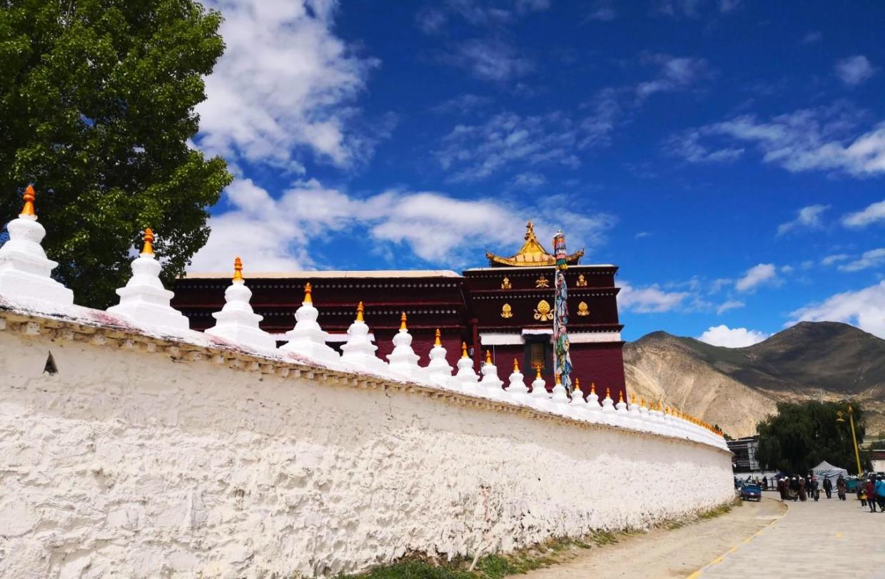 桑耶寺的寺庙和广场被围墙包围,围墙上无数的白塔端坐其上,按照藏传佛教的传统,信徒们拖老携幼围绕着寺庙顺时针一边边的转圈,正是这样的行为把自己和家人的美好心愿传达至天国,包容和尊重是人类最普通的价值所在。