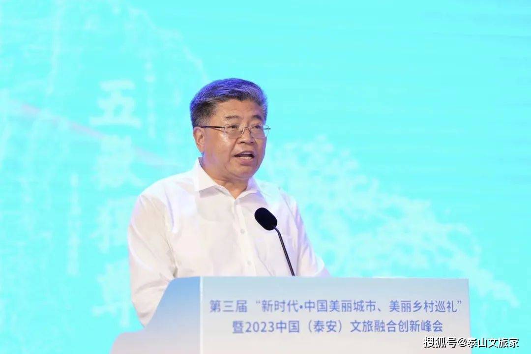 5月19日,2023中国(泰安)文旅融合创新峰会暨第三届“新时代•中国美丽城市、美丽乡村巡礼” 在泰安举行。省政协社会法制委员会副主任、泰山文化传承与高质量发展推进委员会党委书记、常务副主任郭德文出席会议并致辞,副市长冯能斌出席。