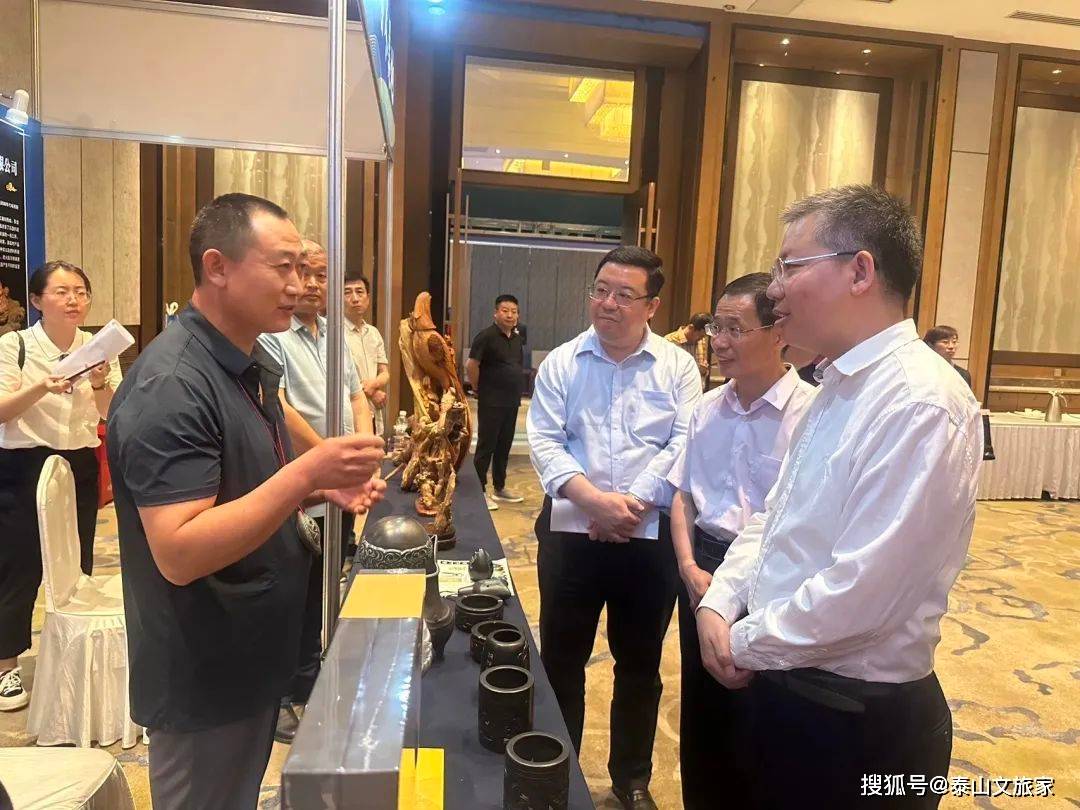 活动还特别设置了“中华泰山 国泰民安”主题文化旅游展示区,泰安各县市区、功能区都带来了各自代表性的产品,种类繁多的特色文创产品、非遗品牌商品、旅游商品研发新成果、新成就,吸引了与会嘉宾的目光。
