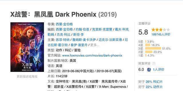 不仅评分扑街,票房也垫了底,甚至不如二十年前这个系列的前作,这就是《X战警:黑凤凰》。