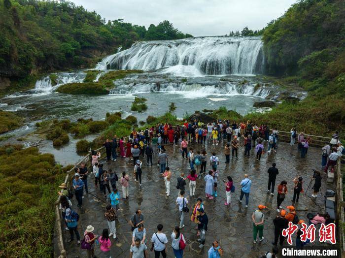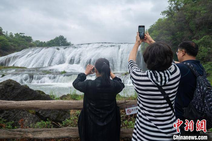 游客在安顺市黄果树瀑布景区游玩拍照。 唐哲 摄