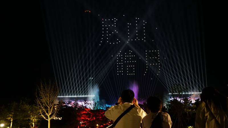 山东曲阜尼山圣境夜游项目内的无人机表演。(受访单位供图)