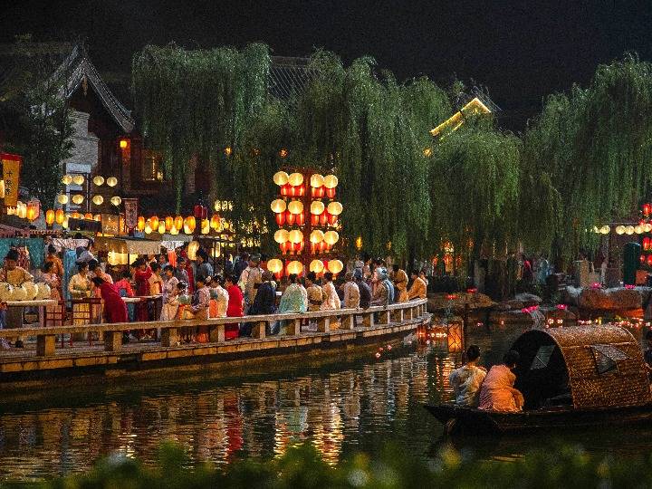 游客在河南省洛阳市洛邑古城游玩。(受访单位供图)