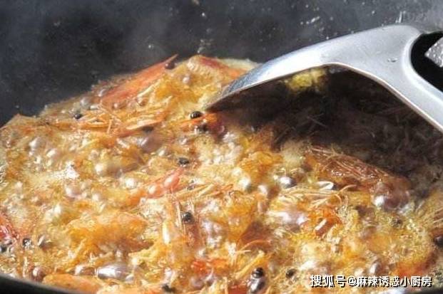 2、锅中倒油,将虾放入油锅中炸一下,捞出。