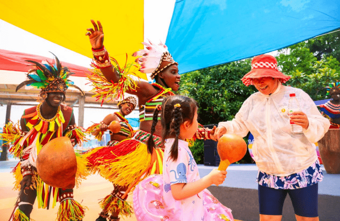工作人员介绍称:“银基乐海水世界不仅有国内顶尖的水上娱乐设备,今年还特别推出了许多精彩活动,包括清凉欢快的浇友大巡游、华丽炫酷的电音烟花秀、别具特色的非洲风情秀和充满力量感的大力士挑战赛等,为游客带来全新体验。并且在5月20日来水世界的情侣还可以参加粉色沙滩上的“蒙眼亲亲挑战、爱的抱抱”等活动,让感情升温,甜蜜升级。”