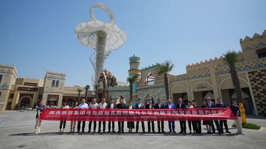 5月14日,撒马尔罕州与陕旅集团数字国宝巡展签约仪式在西安丝路欢乐世界举行。双方约定,建立长期、有效、互利的伙伴关系,携手促进陕旅集团“数字丝路—中国与中亚五国数字国宝展”等项目的推进与执行,让数字化成为丝绸之路文化遗产的“活化剂”。