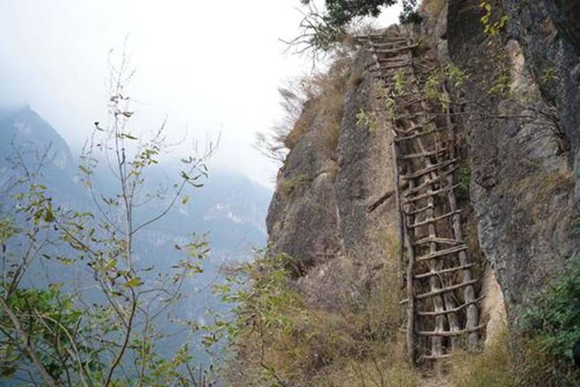 这是一个位于高山上的村庄,村民的房屋分别位于高山的600-1600米左右,差不多有70户人口,原始的上下山,都需要走一些陡峭的山路,至于为什么不修建索道呢?因为他们没钱,而且成本太高,当地村民无法供应,如今只修建了一条木梯的路。