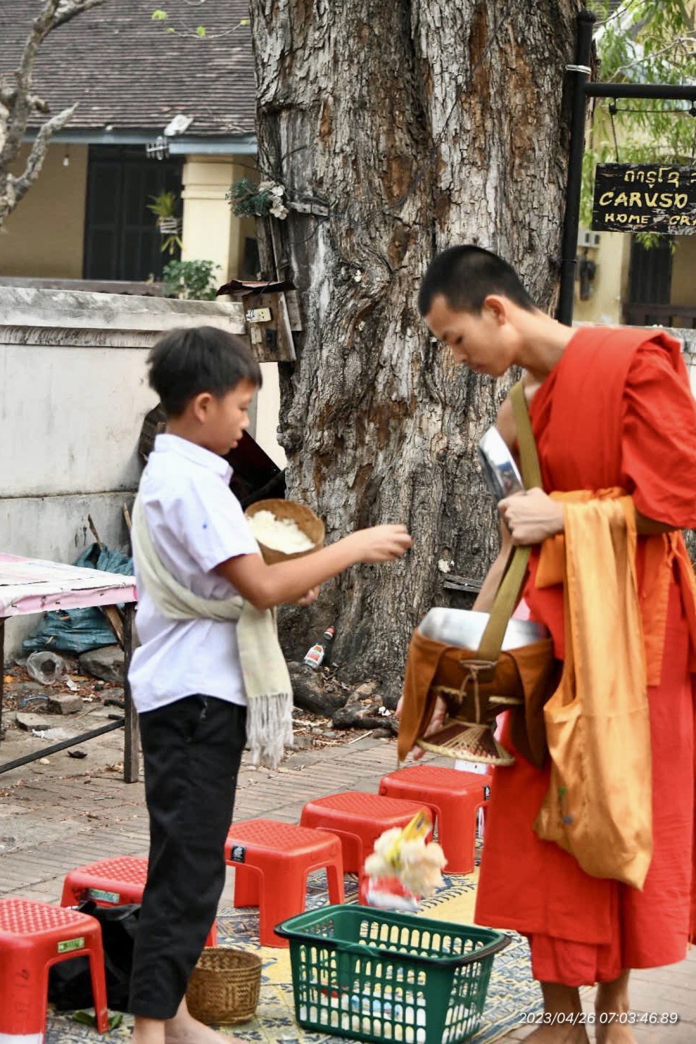 每日早上七点钟左右,一年四季,不论晴雨,当地的居 民和 游客,都会在这个时间和这个地方,举行这样的布施活动……🙏
