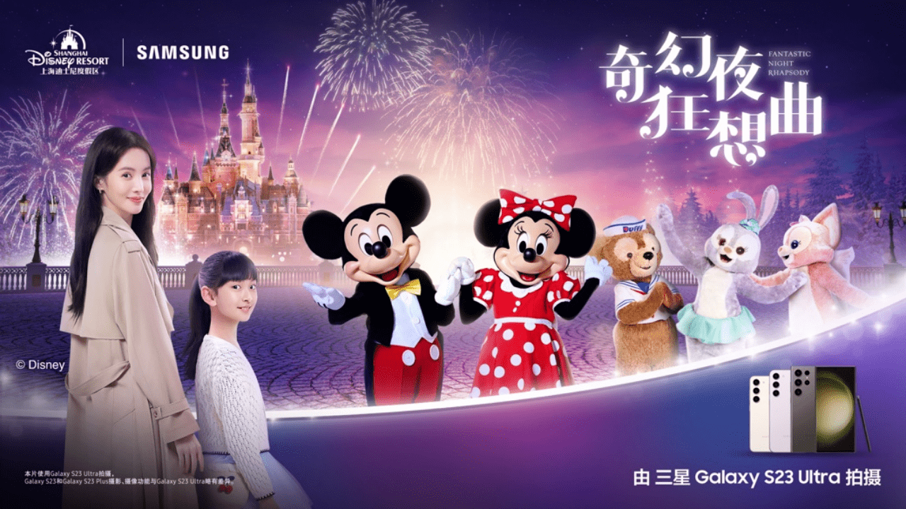 2023年5月19日,三星与上海迪士尼度假区携手打造的微电影《奇幻夜狂想曲》在阿那亚电影周成功首映。该微电影通过三星手机的镜头,在上海迪士尼度假区的奇妙世界中,讲述了迪士尼朋友们的暖心故事,共同庆祝欢乐、冒险和友谊,鼓励人们在忙碌的生活中也能够找回属于自己的初心和快乐。