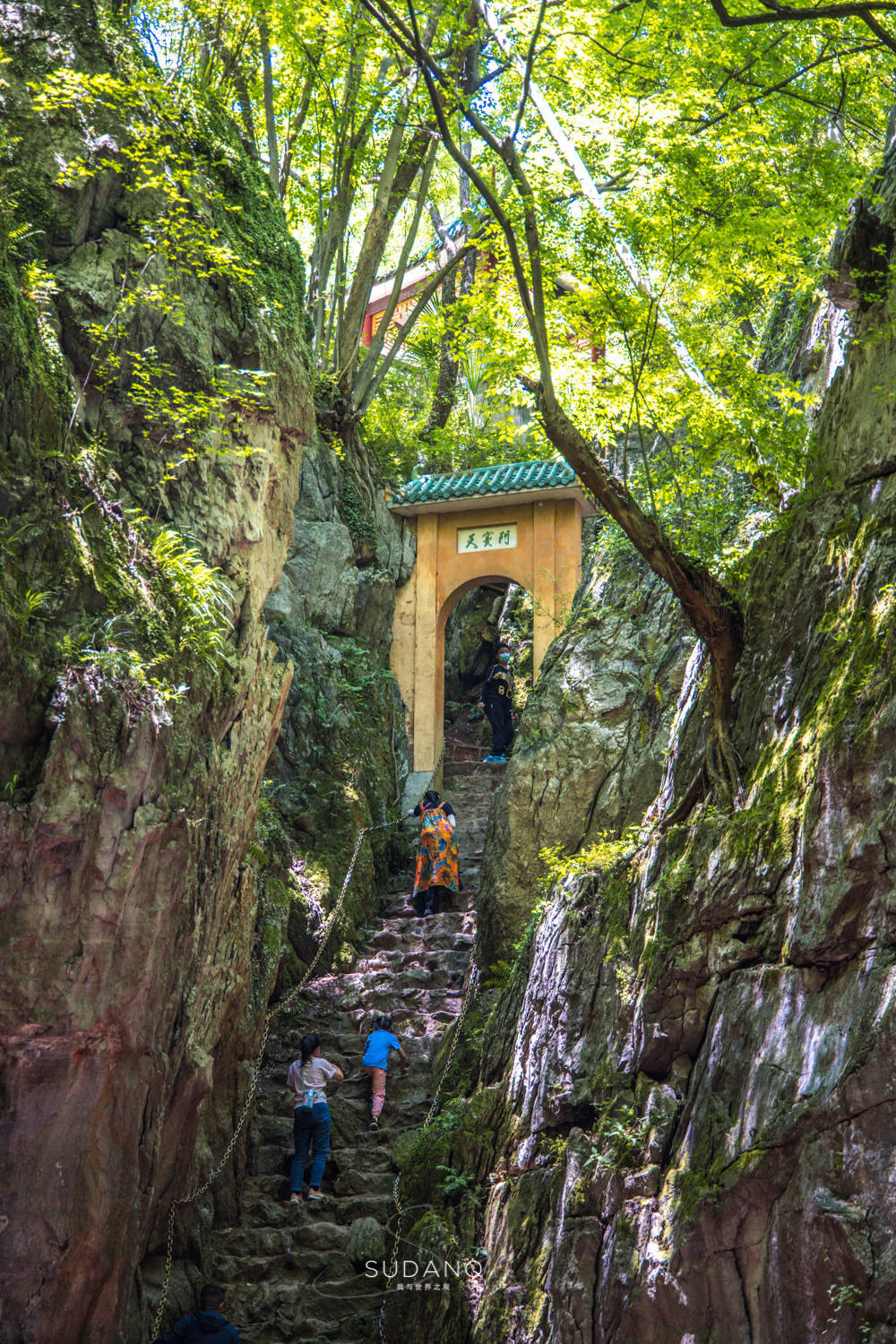 站在这里,左右各有两个出口,且是两道完全不同的风光。左边为陡峭的天窦门,向上攀登可达白云洞顶,见另一番景色。传说这是玉皇大帝赐予白龙神的出入龙宫的通天之门,白龙神由此上天成“天龙”,又称天龙门。