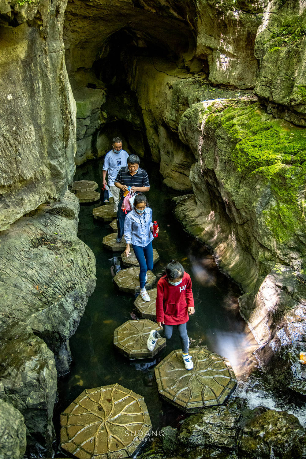 向右则曲径幽处,步步生莲,洞穿洞,溪水轻缓,十分清爽,富有古老的东方意境。当我看到这一幕时,脑海里不禁出这样的一幅画面:唐代一僧人漫步莲花石,听山林鸟语蝉鸣,看河溪游鱼戏水,他轻轻挥袖,那番古意散发着一份“雅”的气息。