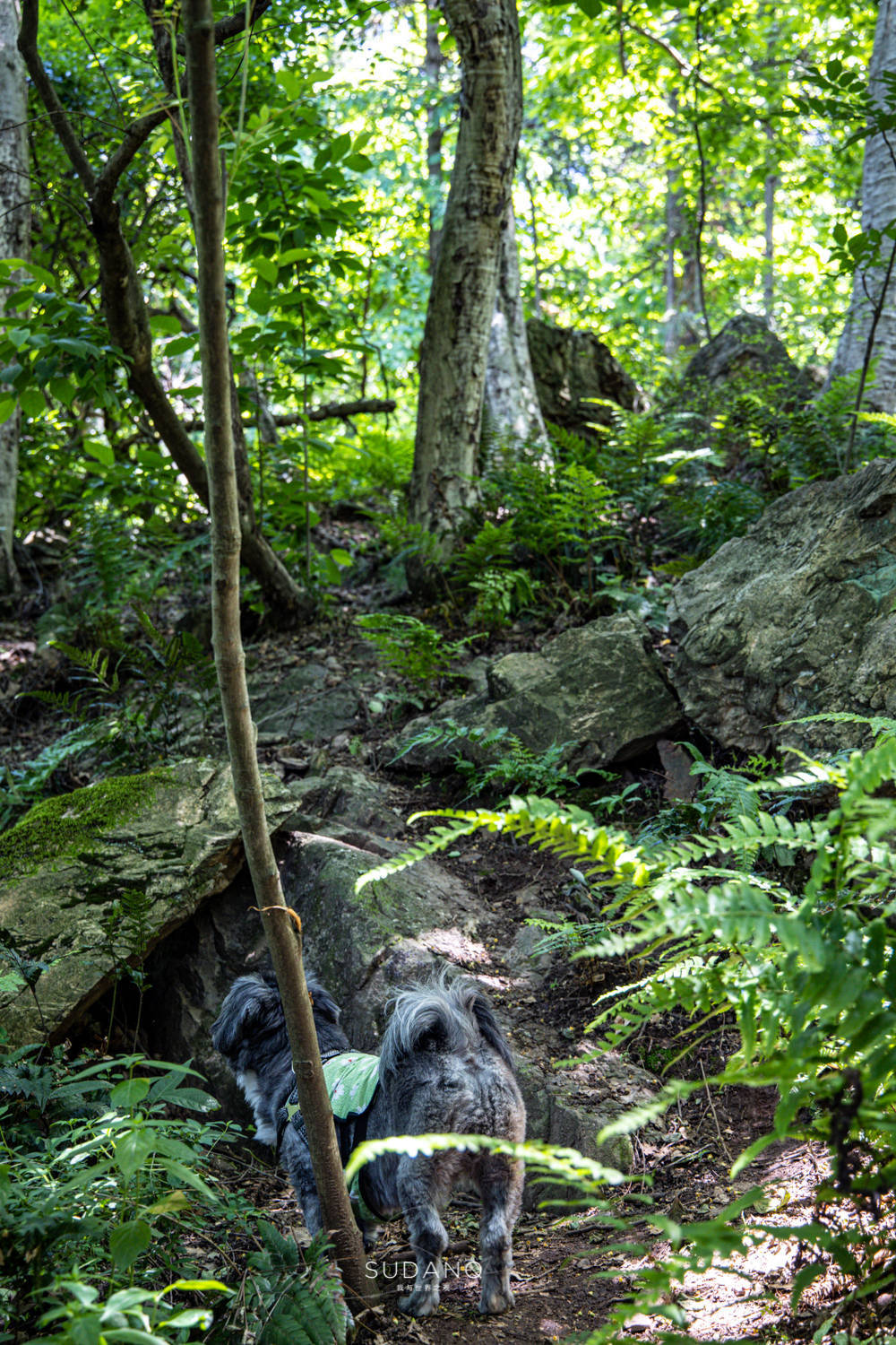 踩着形似荷叶的“浮莲”,再沿着几层石阶便到了白云洞的半山腰上,这里林木苍翠,给我一种园林之感。