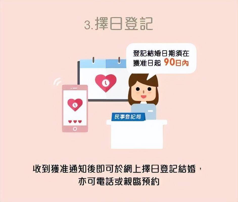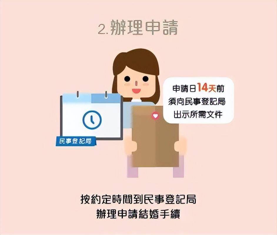 只要你或伴侣以澳门为常居地,达法定结婚年龄,便可于澳门登记结婚。结婚登记之前,必须 预约日子到民事登记局以笔录方式办理申请结婚登记手续。到约定日期当天,结婚双方(或任何一方与另一方的受权人)须带齐所需文件到民事登记局 办理申请结婚登记手续,并可同时 选择婚姻财产制度。如文件齐备,登记官将于五天内完成审批,并以短讯或电话作出通知。