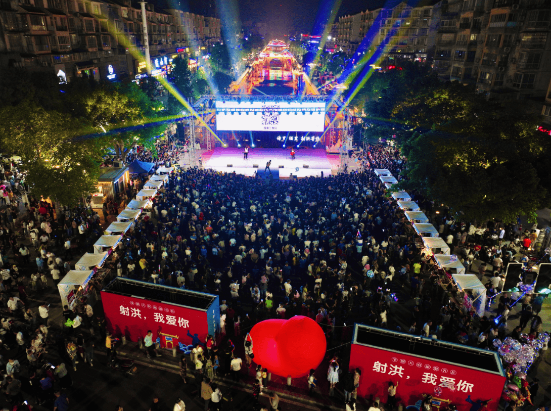 为争创天府旅游名县,助力旅游市场复苏和发展。5月19日晚7点30,“一诗一酒一城爱 ,三生三世三江情”2023年中国旅游日消费季暨520射洪城市告白活动在三江情步行街成功举办。此次活动充满创意,现场以精彩节目、游戏互动、美食品鉴、多重福利派送等方式,吸引近10万市民和游客前往。活动当天,全城30余万人以各种形式表达“射洪,我爱你”,同时,西部射洪网网络直播平台在线浏览量突破78万人次。