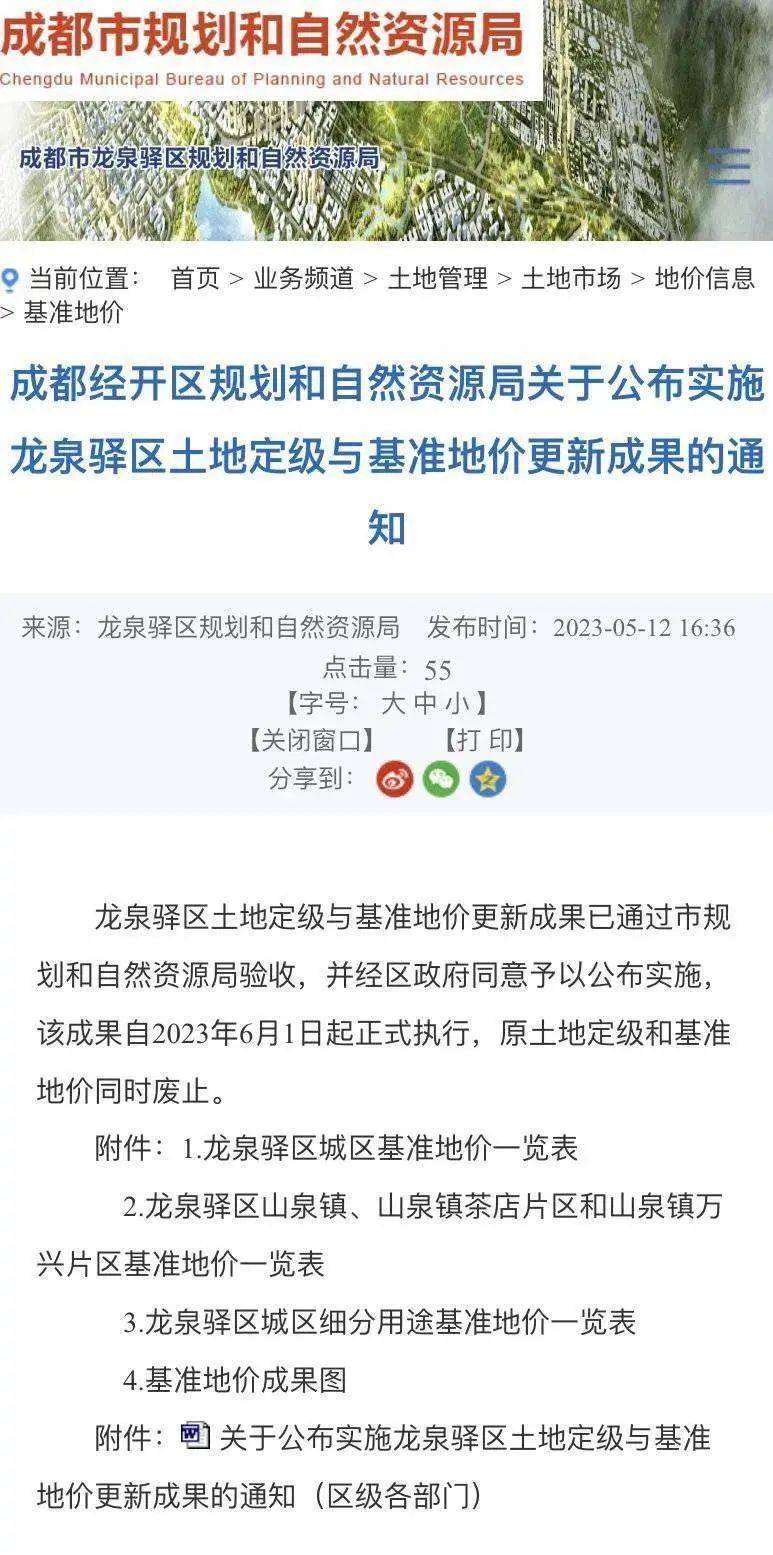 官方网站信息发布据悉,成都经开区规划和自然资源局门户网站于2023年5月12日发布了龙泉驿区土地定级与基准地价更新成果,此成果严格按照《四川省国土资源厅办公室转发〈国土资源部办公厅关于加强公示地价体系建设和管理有关问题的通知〉的通知》(川国土资办发〔2017〕33号)文件要求,经龙泉驿区人民政府批准后对外公布,该成果主要内容为龙泉驿区城镇国有建设用地使用权不同用途评估的平均价格,并未标注“迪士尼预留用地”相关内容。