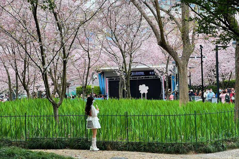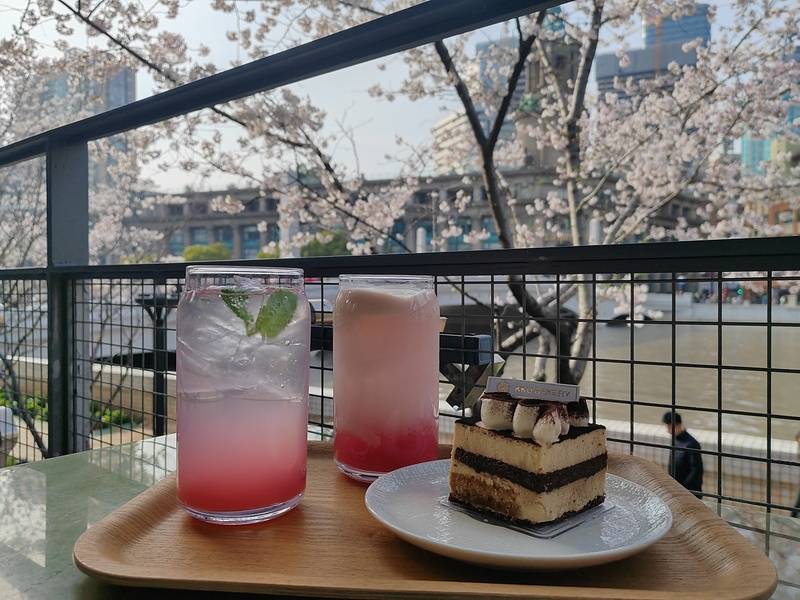在苏州河畔中石化第一加油站的“亲亲侬”咖啡馆,荔枝樱花气泡水、樱之山、樱之山等3款季节限定饮品很受欢迎。很多消费者购买后,与咖啡馆旁的樱花树一起拍照打卡。店员说,饮料里的粉红色不是樱花,而是桃汁;饮料的整体风味来自桃汁、椰子水、奶盖等,“我们希望模拟樱花的颜色,再用清爽的口感还原樱花给人的感觉。”