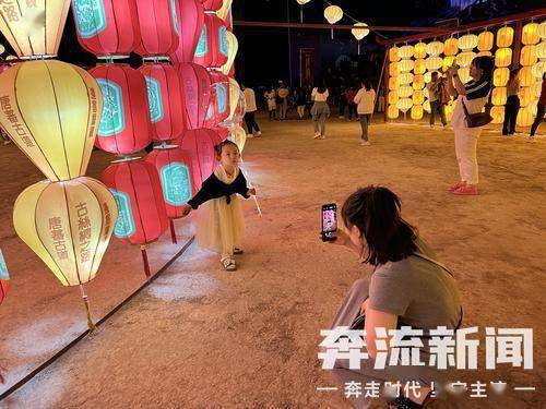 璀璨灯光点亮古镇,赏灯游玩客似云来。