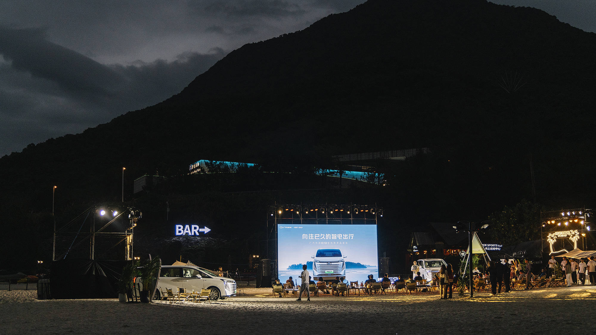 天空微云,夜晚的大鹏湾沙滩上流淌着热情和兴奋的气息。广汽传祺E9的产品说明会,在美丽的海边举办,让我们的心情随着海风习习而起,倍感舒适。