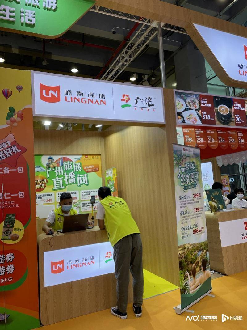 在14.2馆广之旅展区,也有主播将即时状况播出。